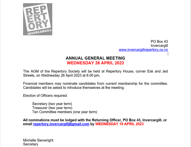 For all the latest news about Invercargill Repertory, bookmark this page and check back often.