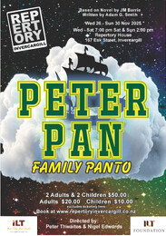Repertory Invercargill proudly presents our traditional Christmas Pantomime PETER PAN "You can Fly!" with us to Neverland this November! Show Dates: 26–30 Nov 2025Meet our magical cast:CharacterPerformerPeter PanGeorgia KelletTinkerbellDraven BoothCaptain Hook/Mr DarlingFe...