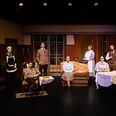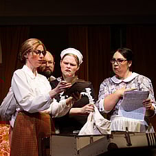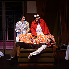 The play’s other roles provide interesting social order contrast and assist the plot elements. There’s Dora, the anxious maid, whose predicament sets the drama in motion. Her touching vulnerability is sensitively delivered by Kellie Post. In contrast, Aisha Williams delivers an often-comical performance as Mrs Terrence, the gruff and practical housekeeper whose no-nonsense presence slices cleanly through the household’s mounting unease. Rounding out the ensemble, Sebastien Fabre’s Inspector Belsize portrays a steady authority and measured intelligence, while Annette Cochran, as Nurse Libby, provides a voice from the outside world.