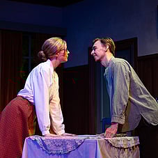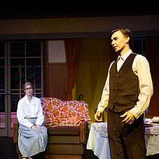 As Olivia, Mrs Bramson’s niece, Maggie Watts delivers a multi-faceted character. She’s stuck in a dead-end situation, craving excitement and romance, but is unaware of how to get it. Her awkward but well-meaning suitor, Hubert, played energetically by Neil McDonald, while warm and earnest, underpins Olivia’s emotional isolation in the Bramson home and deepens the play’s interpersonal dynamics.